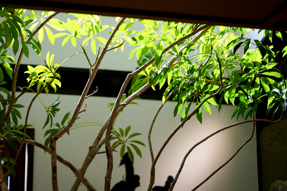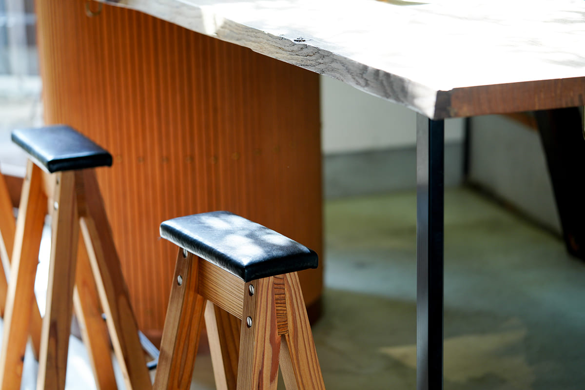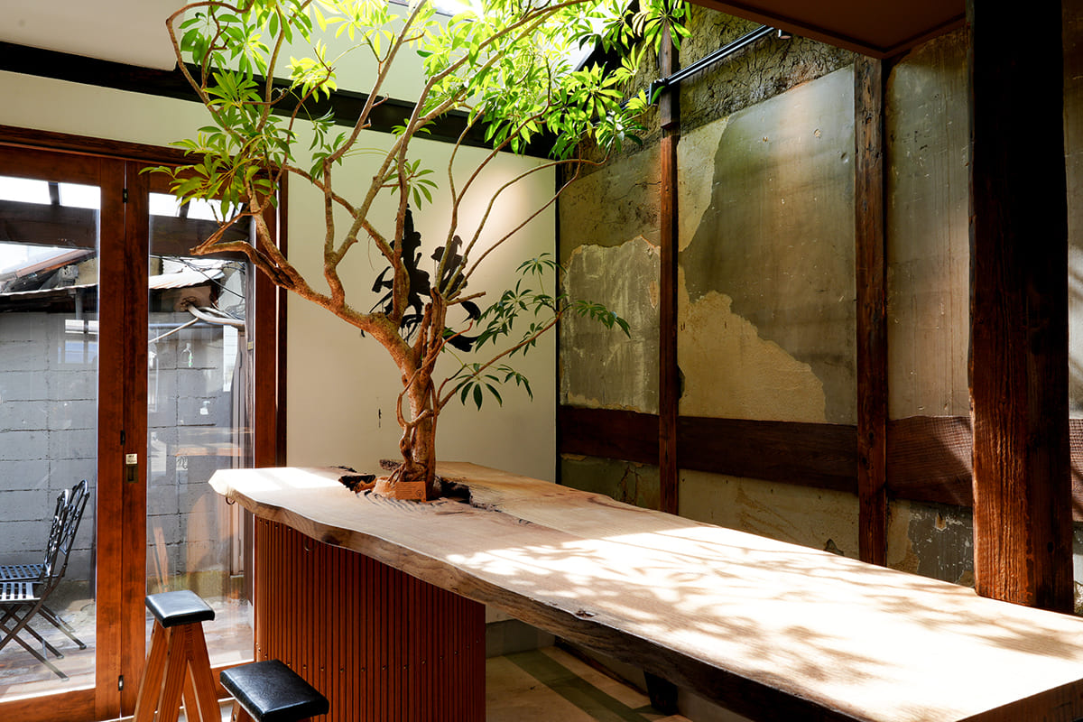 中崎町の街並みに溶け込む店内には大きな木や植物を配し、公園のように気軽に立ち寄れる空間をつくりました。また、手に持って食べ歩く楽しさの中に、日本の食文化の一端が息づいています。
