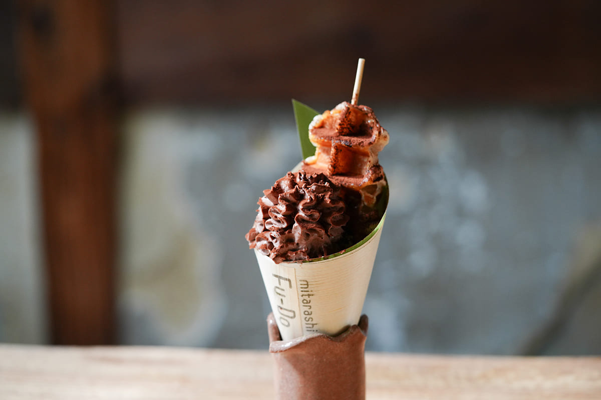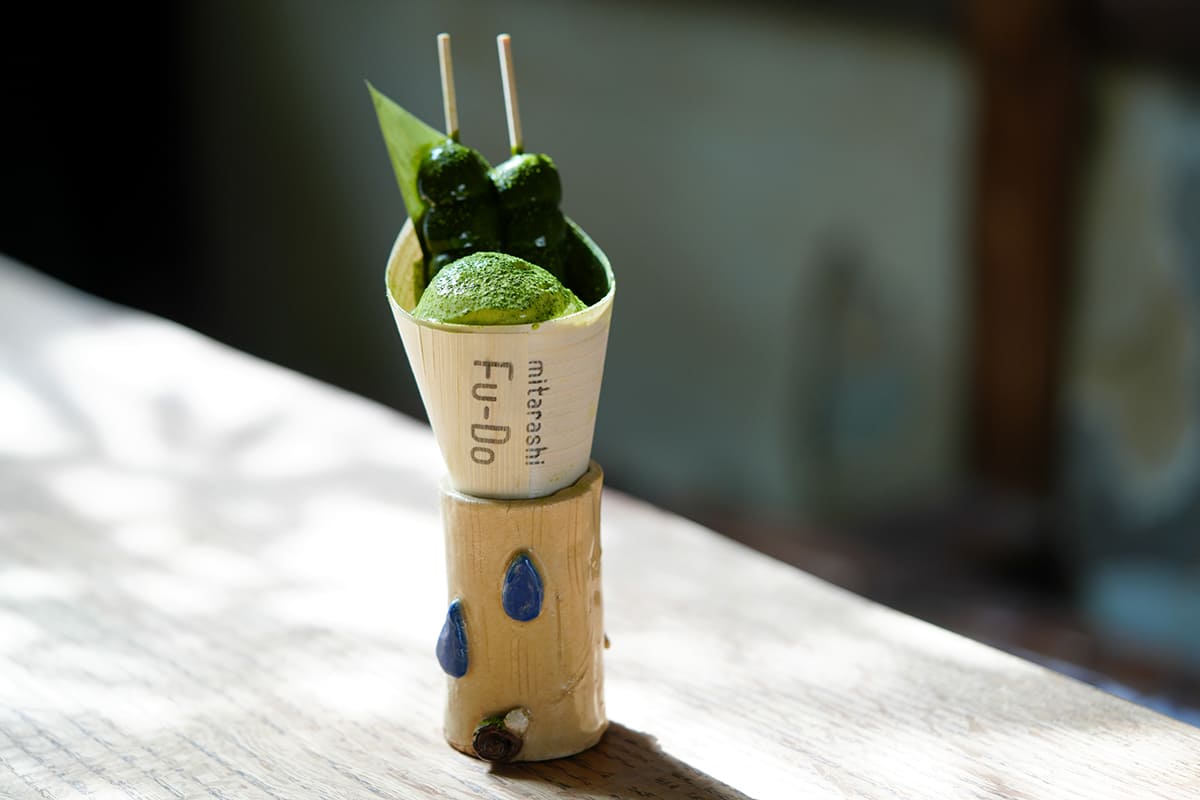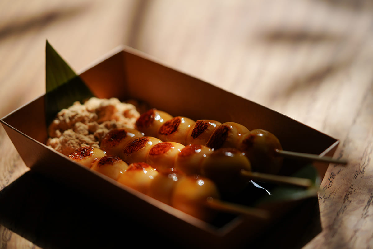 香ばしく焼き上げた生麩に、とろりとしたみたらし餡をまとわせた一串は、どこか懐かしく、それでいて新しい味わい。