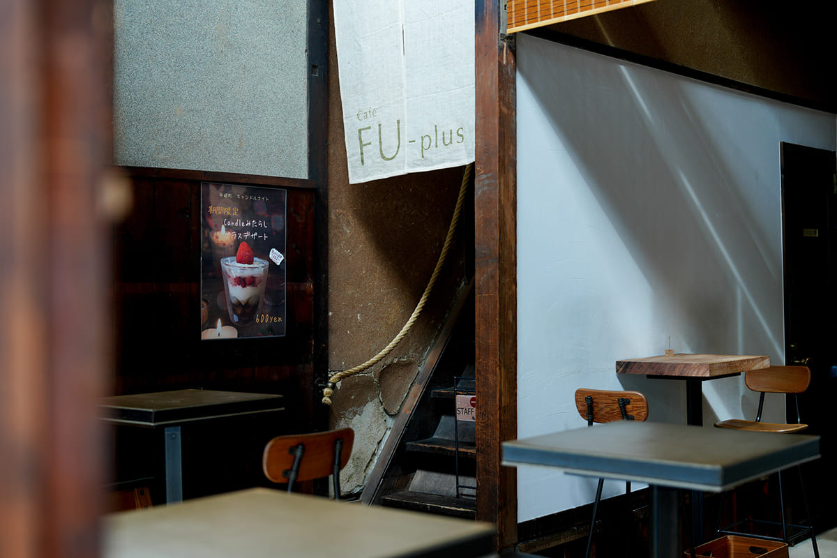 Café FU-Plus は、麩をもっと自由に、もっと身近に味わっていただくための場所として生まれました。古民家の落ち着いた空間の中で、麩を使った料理やスイーツを通して、ゆったりと流れる時間を届けています。