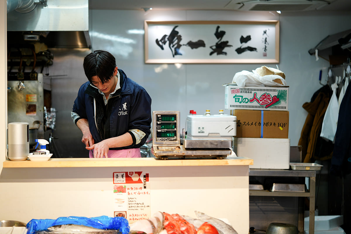 魚屋UOToK は、80余年続いた老舗鮮魚店の精神を受け継ぎながら、新たな一歩を踏み出した魚屋です。対面販売を大切にし、職人が自ら仕入れ、さばき、値を決め、直接お客様に届ける。